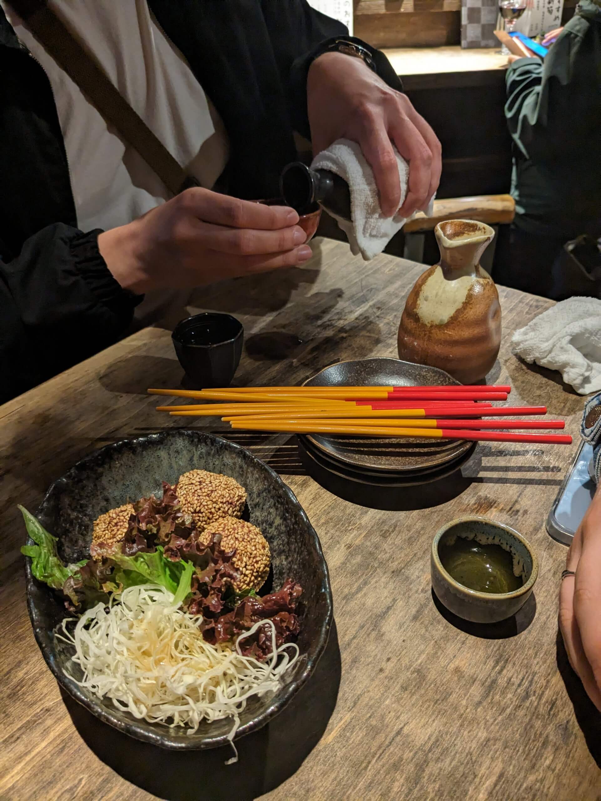 Nach dem Feierabend (oder am Wochenende) kann man in Japan in einem traditionellen Restaurant/Bar namens Izakaya gehen. Dort gibt es allerlei Snacks und auch Sake – den gibt es manchmal heiß und manchmal kalt. Viele Japaner trinken aber auch Bier.